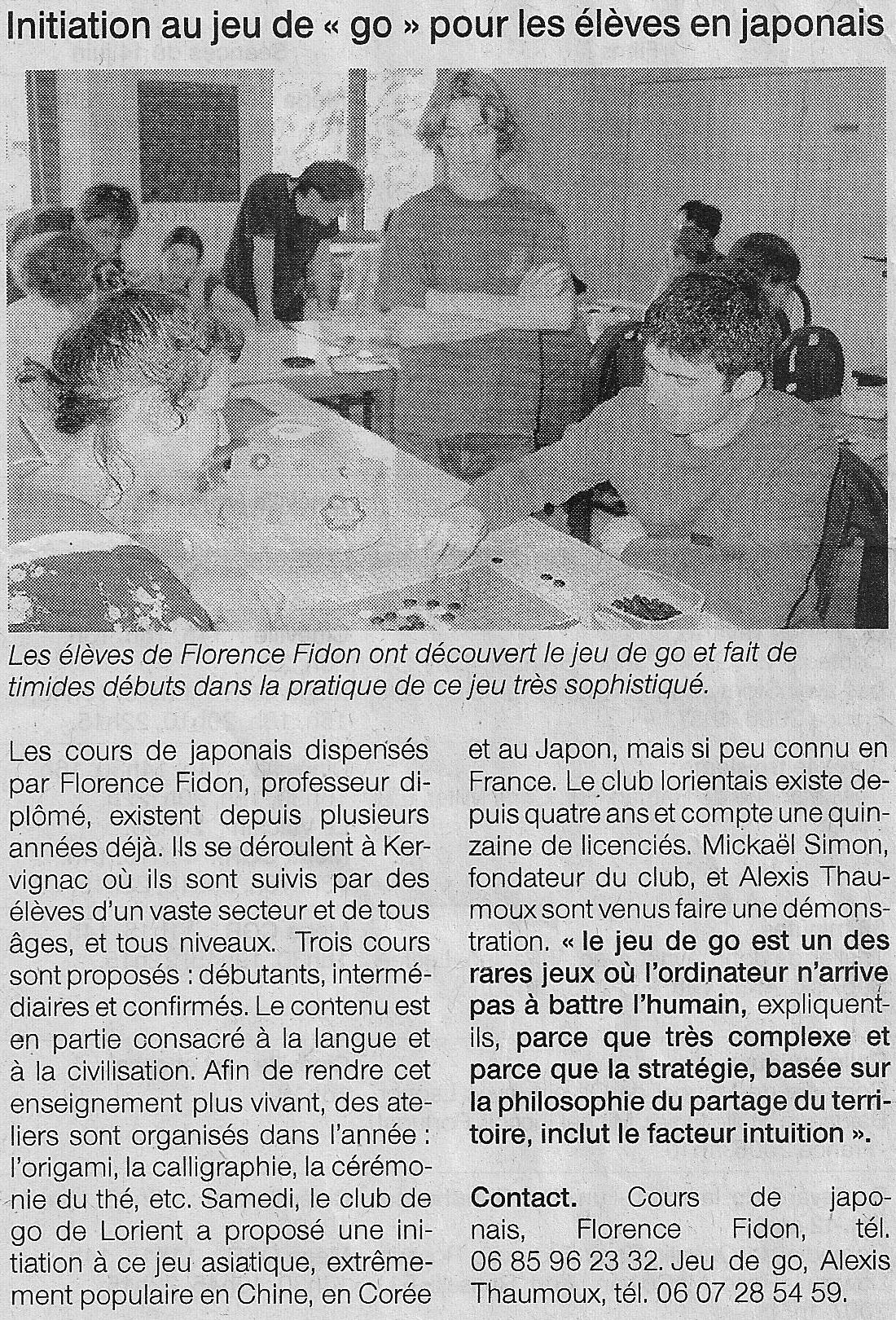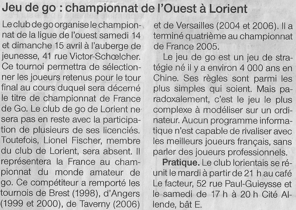 Article sur le 1er tournoi de go de Lorient