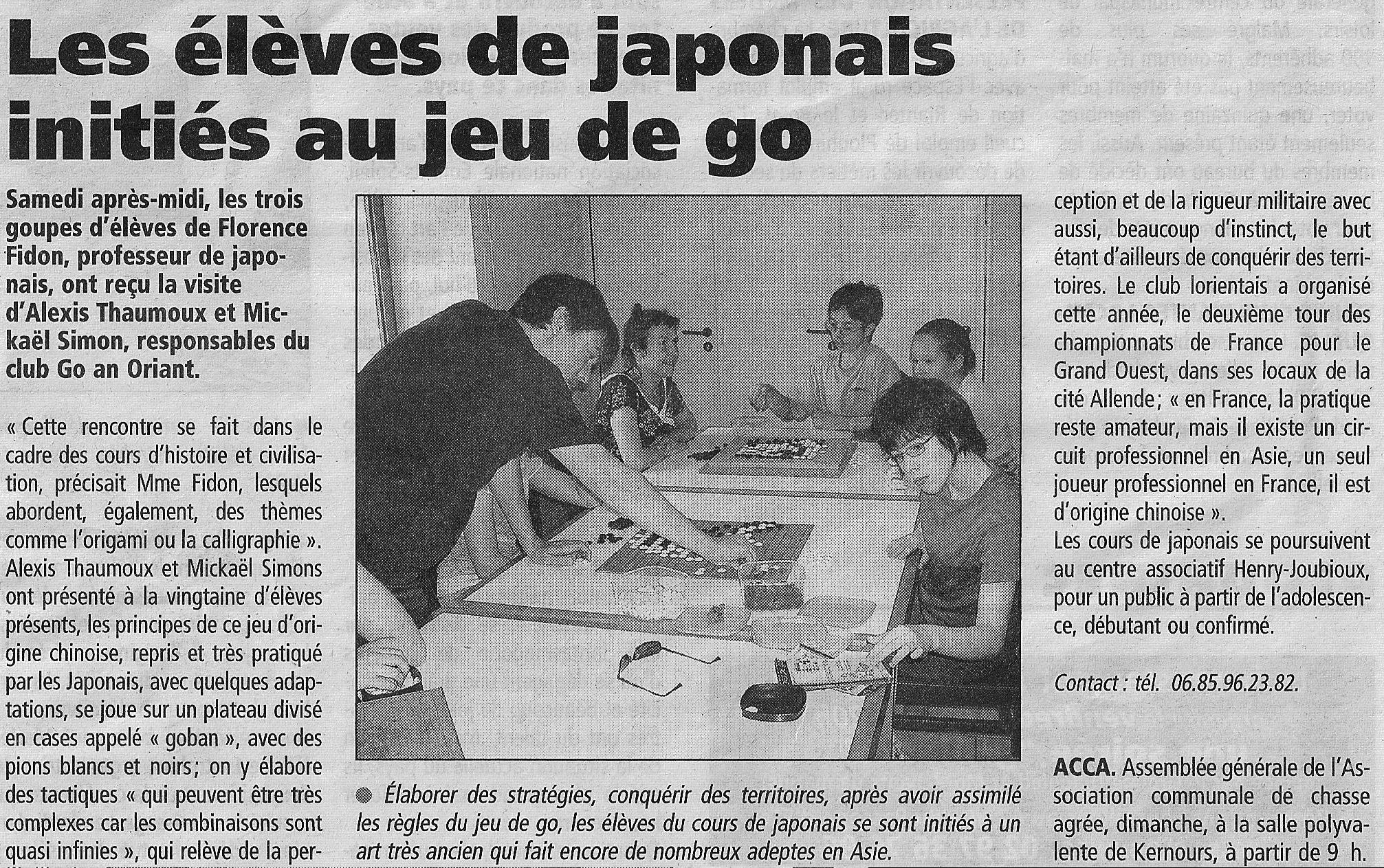 Article sur l’initiation au jeu de go lors du cours de japonais